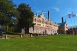 Po przejechaniu około 20 km dotarliśmy do stolicy regionu Blekinge - Karlskrony. Wiele jej zabytków wpisanych jest na listę UNESCO. Naszym pierwszym przystankiem był znajdujący się na wzgórzu Bryggareberget - punkt widokowy. Po drodze minęliśmy znajdujące się w budynku po starym browarze (Tyska Bryggaregården) - centrum konferencyjne.